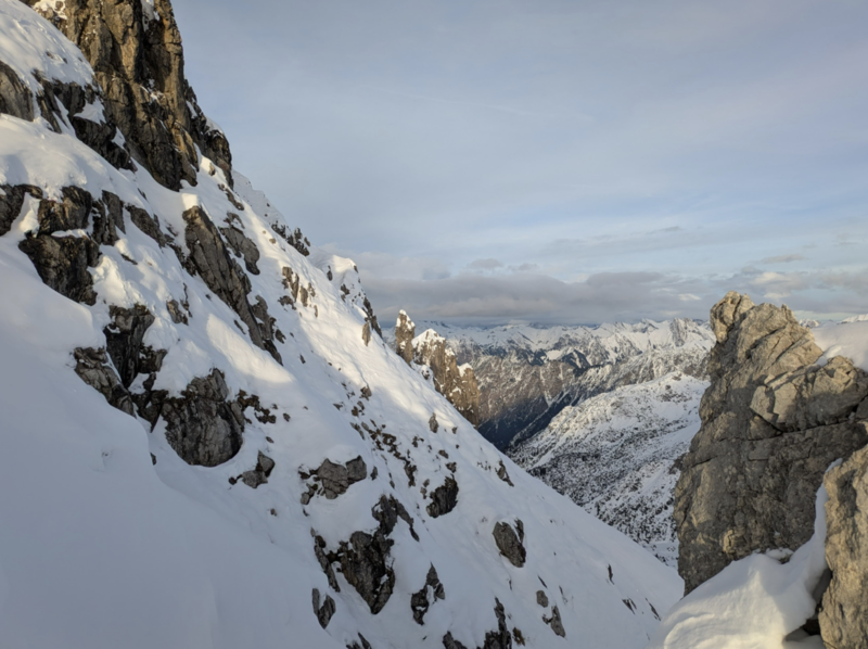 B-C am Grat, aber rechts steile Wand - lässt sich nur vor Ort einschätzen