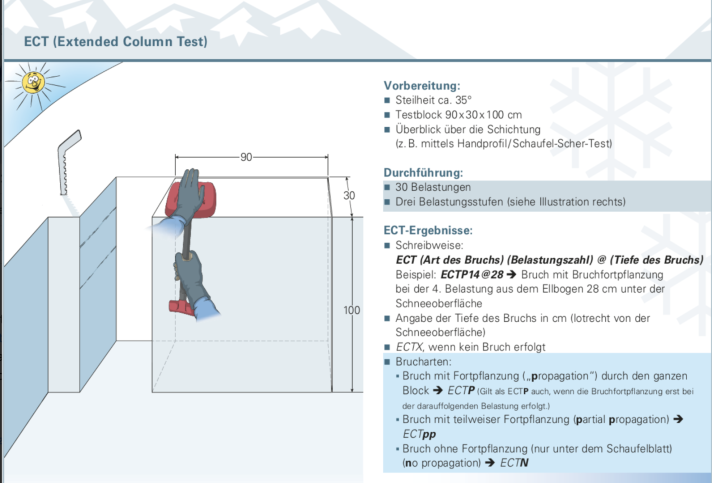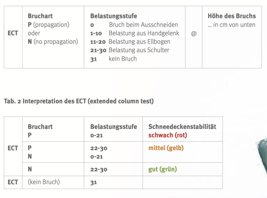 Wenn ein Teilbruch auftritt, wird ebenfalls die Schlagzahl notiert und beobachtet, wie viele weitere Schläge es braucht, um den Bruch fortzupflanzen. Für jeden Bruch wird ebenso die Tiefe der Schwachschicht in cm notiert.